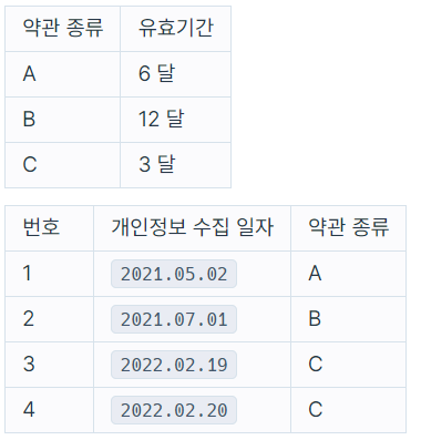 당신은 오늘 날짜로 파기해야 할 개인정보 번호들을 구하려 합니다.