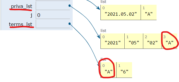privacies의 [i][1] 의 값이 [j][0]과 같은지 확인