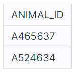 이름이 있는 동물의 ID는 A524634와 A465637입니다. 따라서 SQL을 실행하면 다음과 같이 출력되어야 합니다.