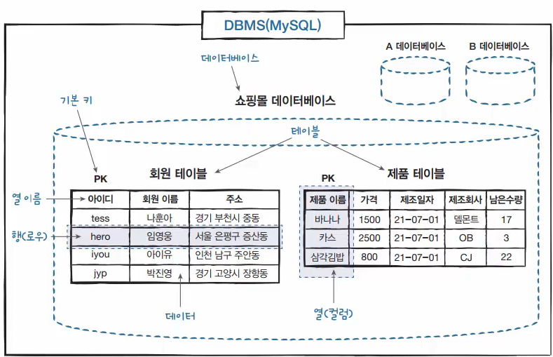 - jyp라는 아이디 하나, 박진영이라는 이름 하나가 각각 데이터이다