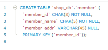 - 원칙적으로는 저 SQL문을 직접 입력해야하지만 지금은 처음이니 워크벤치를 통해 자동으로 입력되게 하고 있는 것
