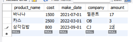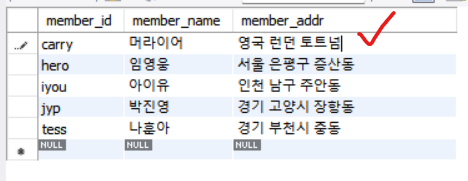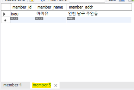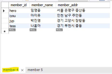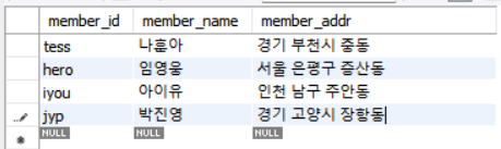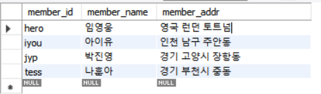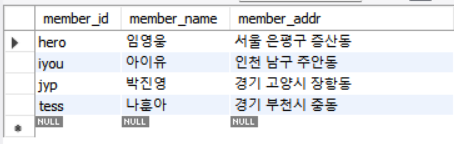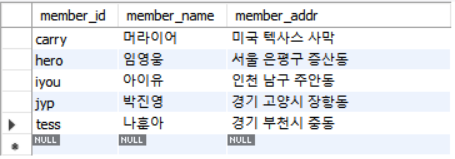 - 데이터를 넣은 적이 없기 때문에 NULL로 나옴