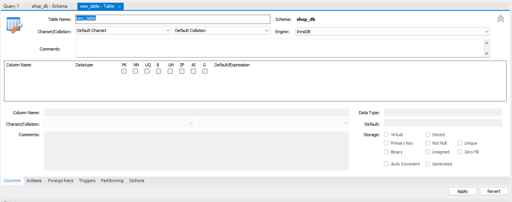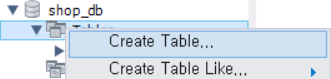 🖱️ Tables → 마우스 오른쪽 → Create Table