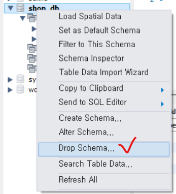 - schema 부분에 새로 db가 생성되어있음