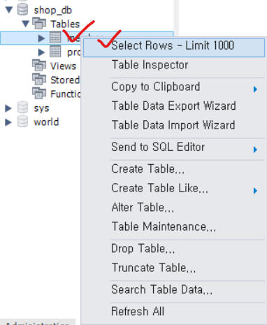 🖱️ 테이블 → 마우스 오른쪽 → Select .. 클릭