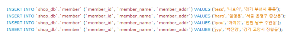- 테이블 안에 데이터 입력/수정/삭제하기