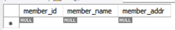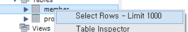 - Tables 안에 member 테이블이 만들어진 것을 확인할 수 있다.