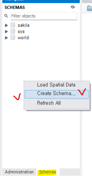 🖱️스키마 → 마우스 오른쪽 → Create Schema