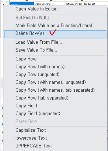 🖱️ 해당 열 앞부분 마우스 오른쪽 클릭