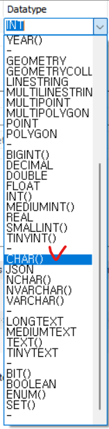 🖱️ Datatype 밑칸 클릭해서 직접 입력하거나 메뉴에서 선택