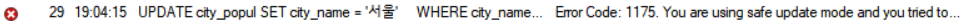 - workbench 자체에서 UPDATE를 못하게 막아놨음