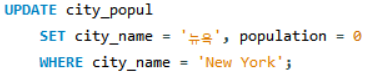 - 모든 행(데이터)를 '뉴욕', 인구수 0명으로 바꿔버린다
