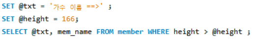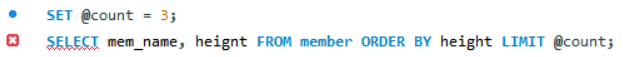 - LIMIT으로 보고 싶은 데이터 개수 제한할 때 변수를 활용하려고 했는데