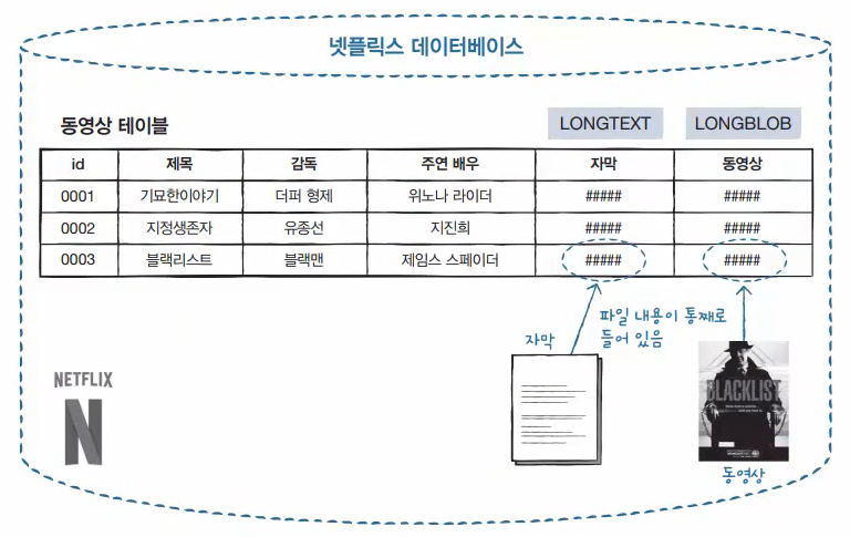 - 동영상의 경우 binary data라고 해서 이진데이터가 저장된다