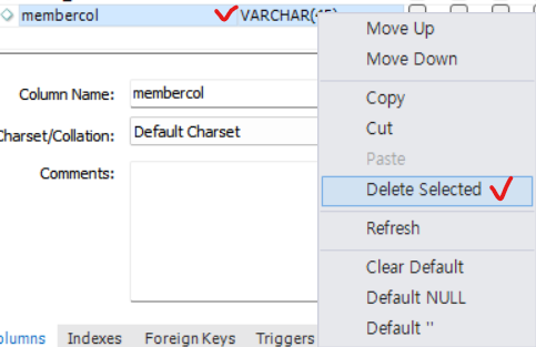 - 만약 잘못 추가한 열이 있다면 마우스 오른쪽 → 'Delete Selected'