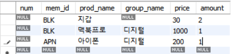 - NULL 부분 더블클릭해서 값 채워 넣기