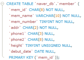 - 스키마를 확인해보면 member 테이블이 생성되어있다