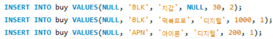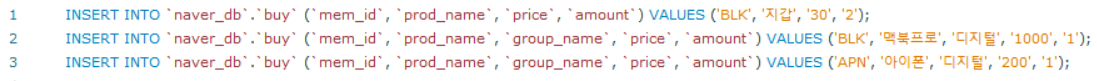 - 순번은 입력하지 않음 (AUTO_INCREMENT로 자동 입력되기 때문)