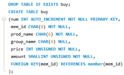 - 구매 테이블에 데이터가 있으려면 회원 테이블에 해당 ID의 데이터가 있어야 한다