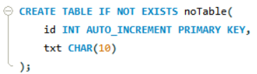 - noTable에 입력 매개변수를 입력, NULL은 id