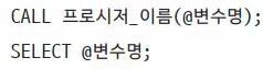 * 저장 프로시저 안에서 변수 선언은 DECLARE 활용(DECLARE 변수명 변수타입;)