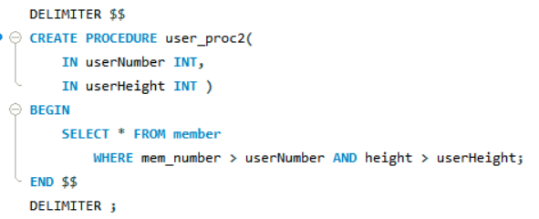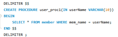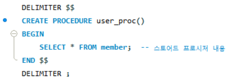 - 실제 프로시저를 만드는 것은 CREATE PROCEDURE