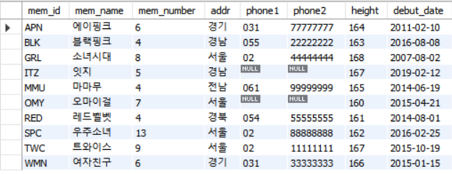 - 결과적으로 SELECT * FROM member WHERE mem_name = '에이핑크'; 가 된다