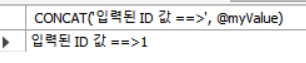 - outValue의 값이 @myValue로 들어가는 것