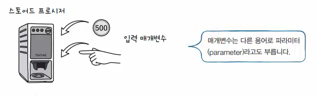 - 프로시저에게 어떤 값을 전달함