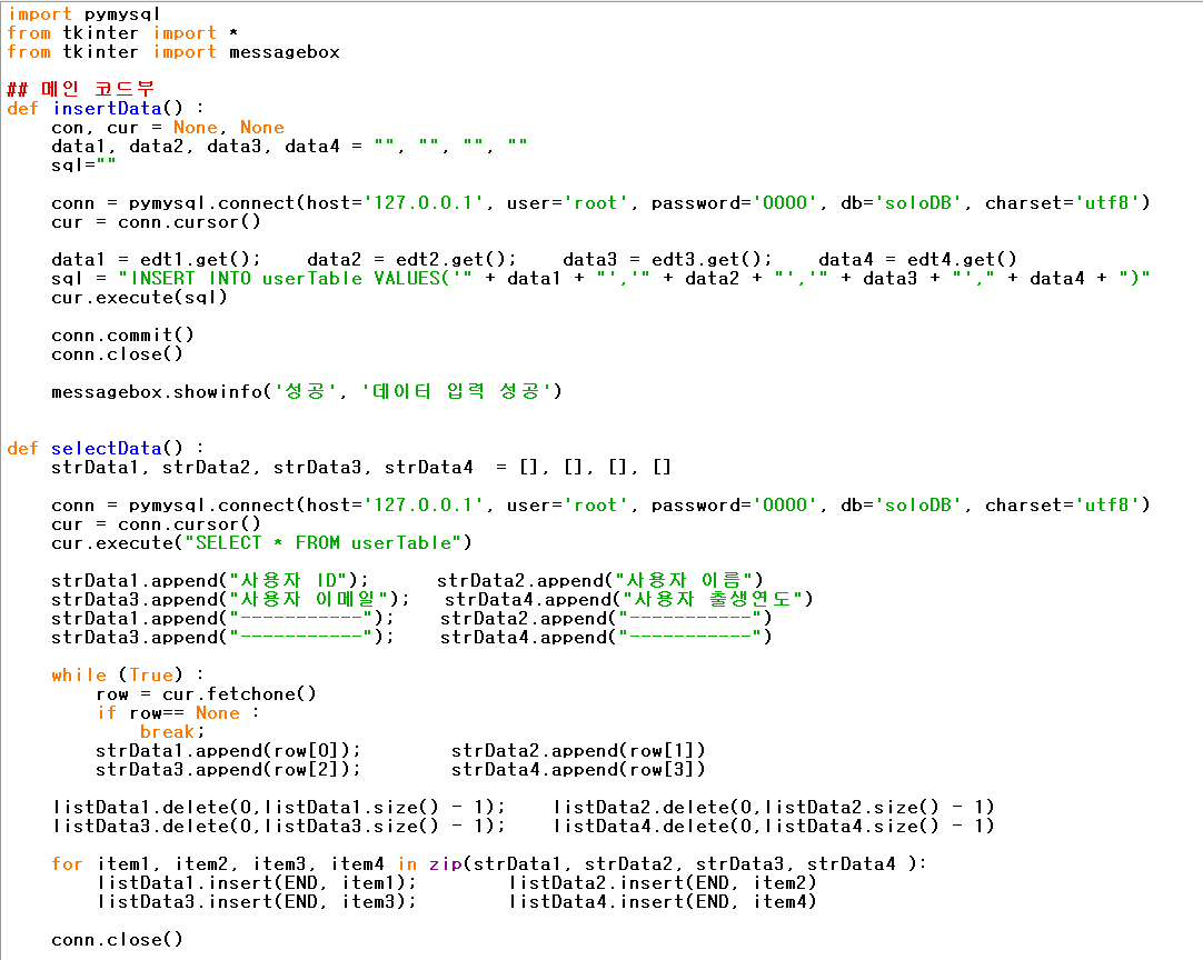 - 조회 버튼을 누르면 selectData()함수가 실행됨