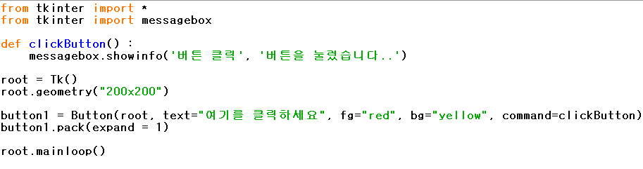 - 버튼은 클릭하면 어떤 작업을 해줘야하기 때문에 command를 설정해준다