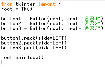 - tkinter 라이브러리를 사용하기 위해 임포트(무조건)