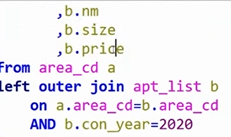 - 해석: area_cd에 있는 시, 구 별로 2020년에 건축된 아파트 매매건의 아파트 명, 사이즈, 매매 가격을 보고 싶다