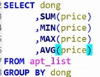 - 동별 아파트 매매가 합계, 최소값, 최대값, 평균