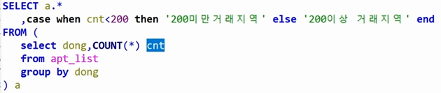 - 새로운 컬럼이 하나 더 생겨 해당 지역이 200건 이상 거래지역인지 200건 미만 거래 지역인지 나타냄
